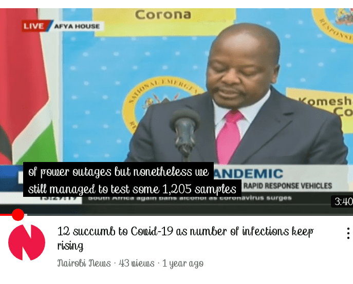 Different social media platforms shared the mortality rate on twitter while content creators shared some videos on you tube about the rate at which people are losing their lives. The Ministry of Health in Kenya who’s cabinet secretary is Mutahi Kagwe announced everyday the people infected, those who have died and those I quarantine every day in the Television. This was done so that citizens can be aware of the virus and be more cautious